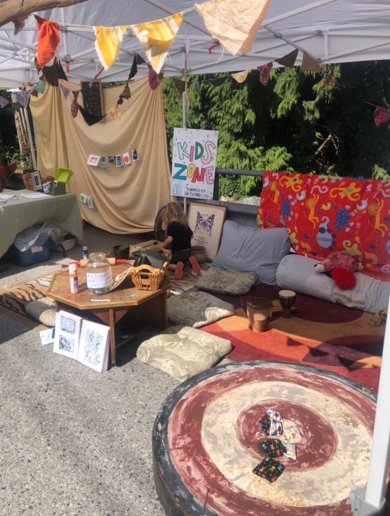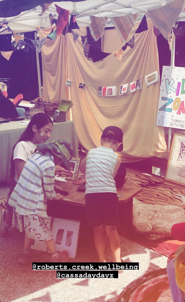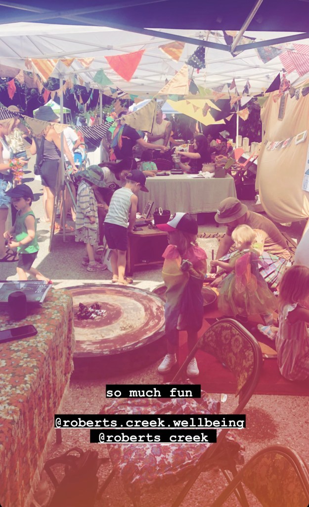 Janis Revival Kidszone in collaboration with Cassidy of Roberts Creek Wellbeing down by the bridge/pier/mandala in central Roberts Creek. Vending some great mid-summer goods as well as offering interactive crafts options